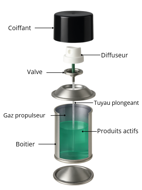 Après avoir compris le mécanisme, il est important de savoir ce que contient concrètement un aérosol. C’est le moment de découvrir les différents composants utilisés dans les formulations :